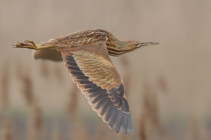 James and Will, waiting for the bird to show. I literally put my camera down when the bird jumped up and took off! I got on it in my bins, flying away about 250 m away - what I noticed instantly was the prominent trailing edge and plain primaries. I quickly switched to my camera and fired off a few shots in the gloom until the bird dropped into the reedbed and out of view. I couldn't believe my luck, neither did many of the others who had been standing there for hours.